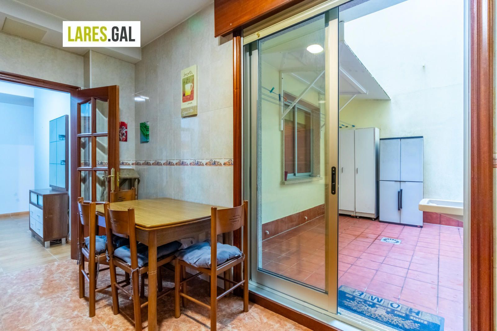 El piso se distribuye en un salón comedor con balcón hacía la carretera, cocina independiente y equipada, amplia y con acceso a un patio grande particular, tres dormitorios y dos baños, uno de ellos con ducha, dentro de la habitación principal y el otro es con bañera.